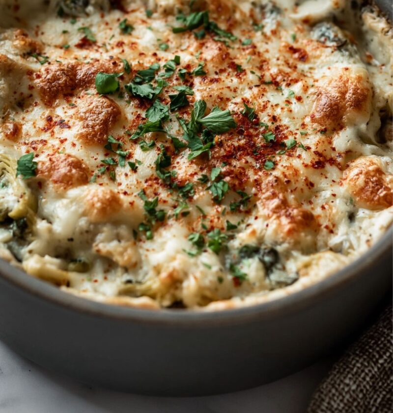 Casseroles often get a bad reputation for being heavy and bland, but the acidity from the marinated artichokes cuts through the rich cheeses perfectly. I used to drain the artichokes completely dry before realizing a little of their marinade adds incredible depth to the sauce.
