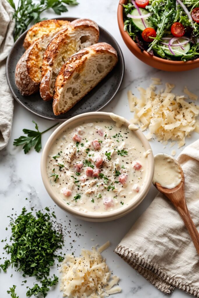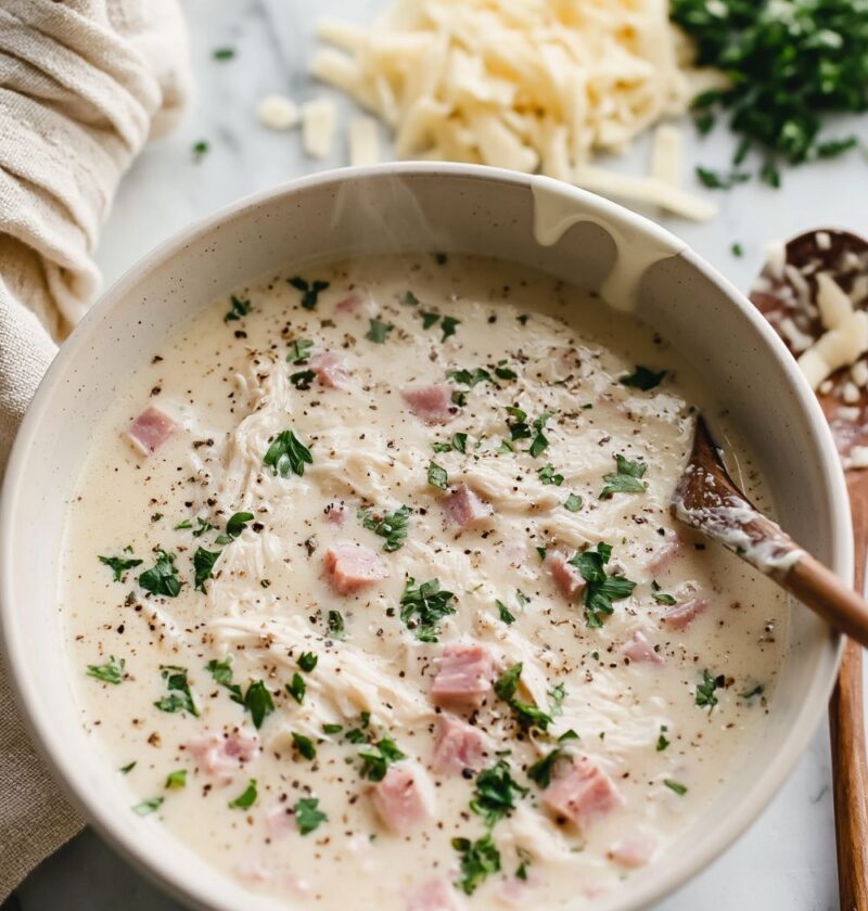 minutesChicken Cordon Bleu Soup features rich, creamy textures, savory diced ham, and melted Swiss cheese. Ready in 35 minutes, this cozy comfort food delivers classic flavors without the fussy prep work. It is an easy one-pot dinner for busy weeknights.