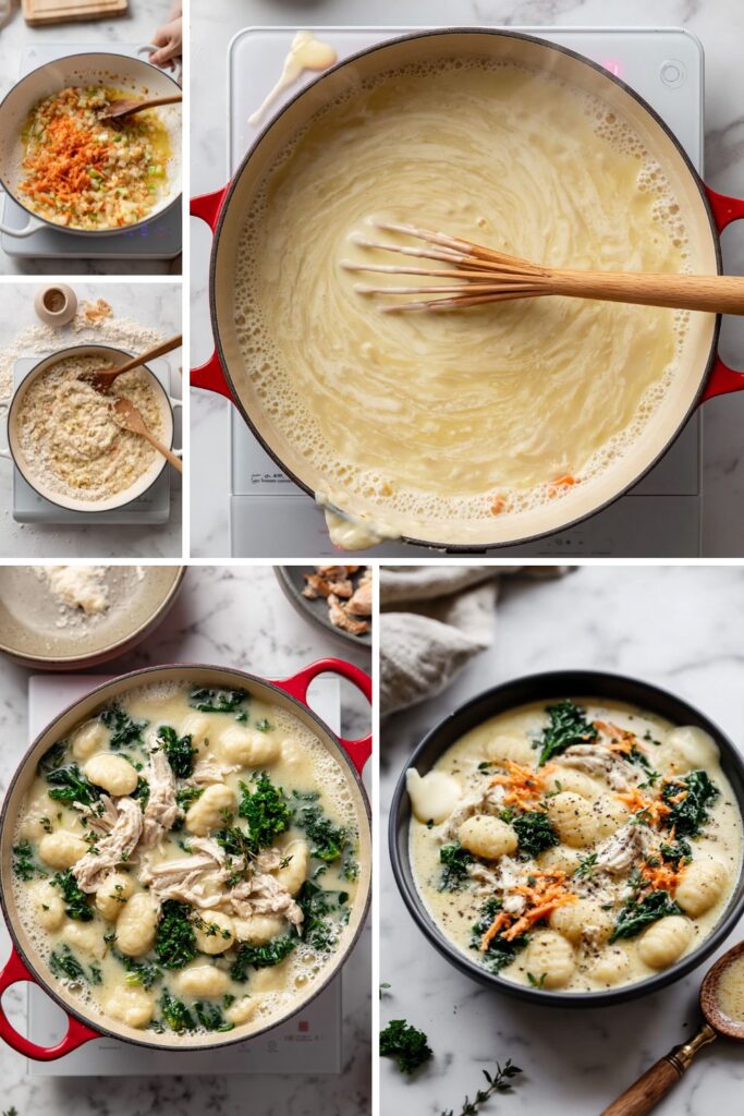 • 1. Sauté the Vegetables: Heat olive oil in a large pot over medium heat. Add the onion, carrots, and celery, cooking for 5 minutes until softened.