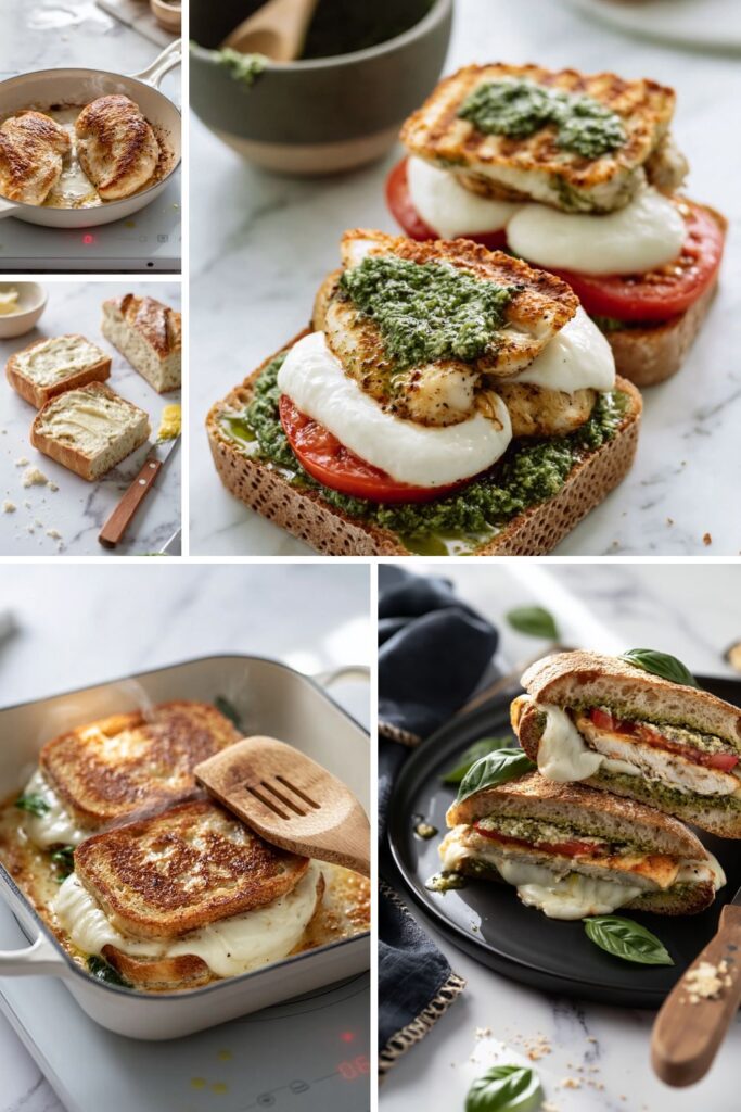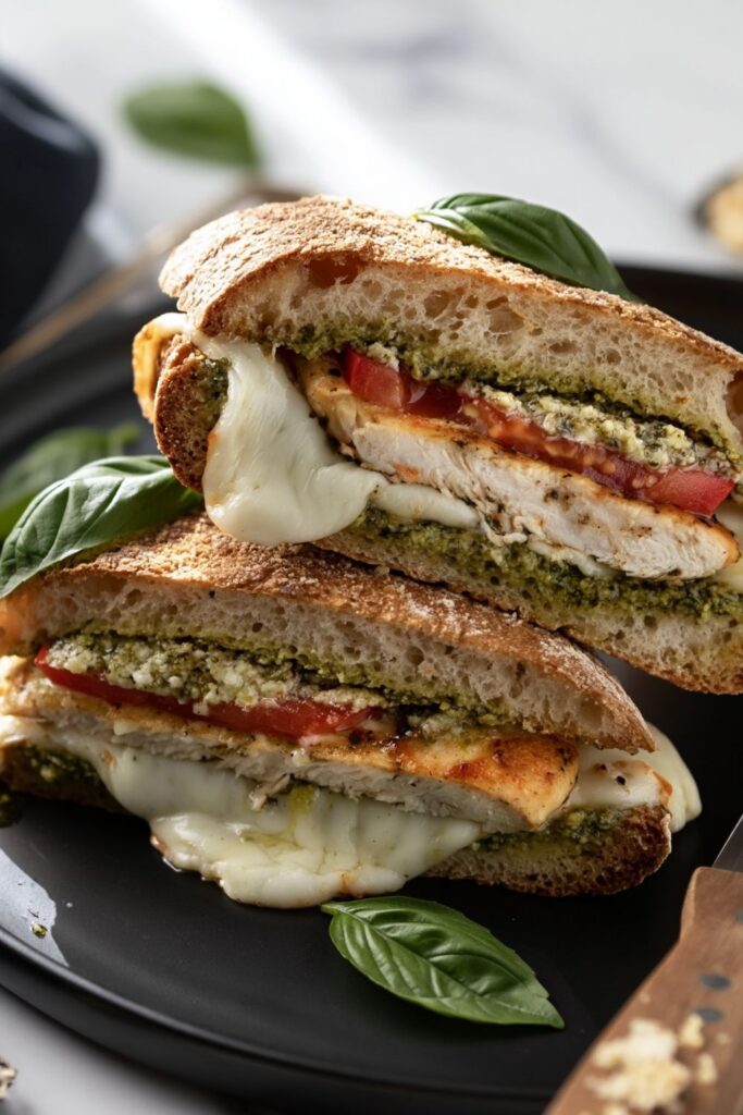 minutesCrispy gooey Chicken Pesto Mozzarella Sandwich features pan-seared chicken cutlets, rich basil pesto, and thick fresh mozzarella slices. Ready in 25 minutes, this fast and easy toasted meal offers a simple route to a warm, satisfying weekend lunch at home.