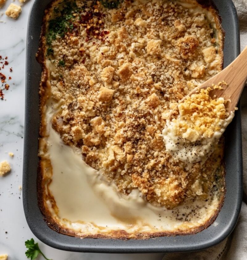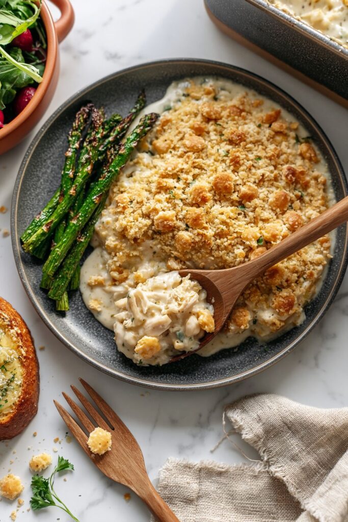 The crushed buttery crackers create an essential crispy contrast to the tender chicken filling. It prevents the texture from becoming one-note and keeps everyone coming back for second helpings.
