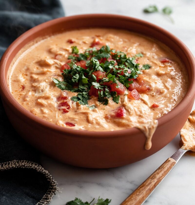 Rotel Chicken Dip blends creamy cheeses, shredded chicken, and zesty diced tomatoes into a bubbling appetizer. Ready in just 20 minutes, this simple stovetop recipe relies on basic pantry staples. It is an incredibly fast crowd-pleaser for game day gatherings.